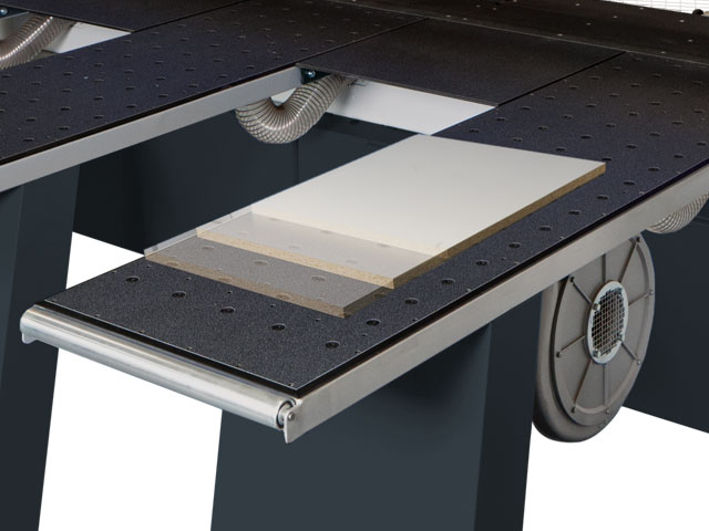 Beam Saw Machine with high feed rate driven by rack&pinion and guided on hard guide roads that ensures high cutting accuracy. oped with advance technology with multi chamber system for max. rigidity of the double roller carriage Rip-Fence with fine adjustment can be set with pinpoint precsion by adjusting screw main motor given break and timing belt.
